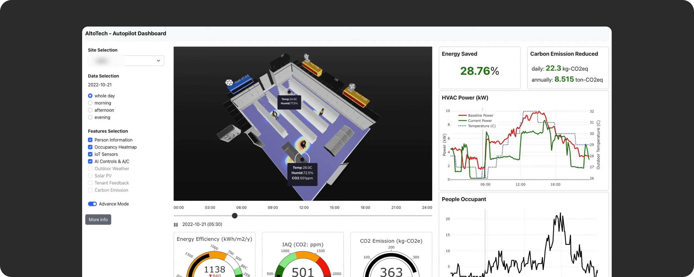 AI-powered area-based people counting from CCTV with clear visual analytics (Bird’s-eye view + interval heatmaps). Use occupancy insights to optimize staffing, improve safety, and integrate with your building’s energy workflows to support Net Zero Building Solution and ESG Real Estate Thailand goals.