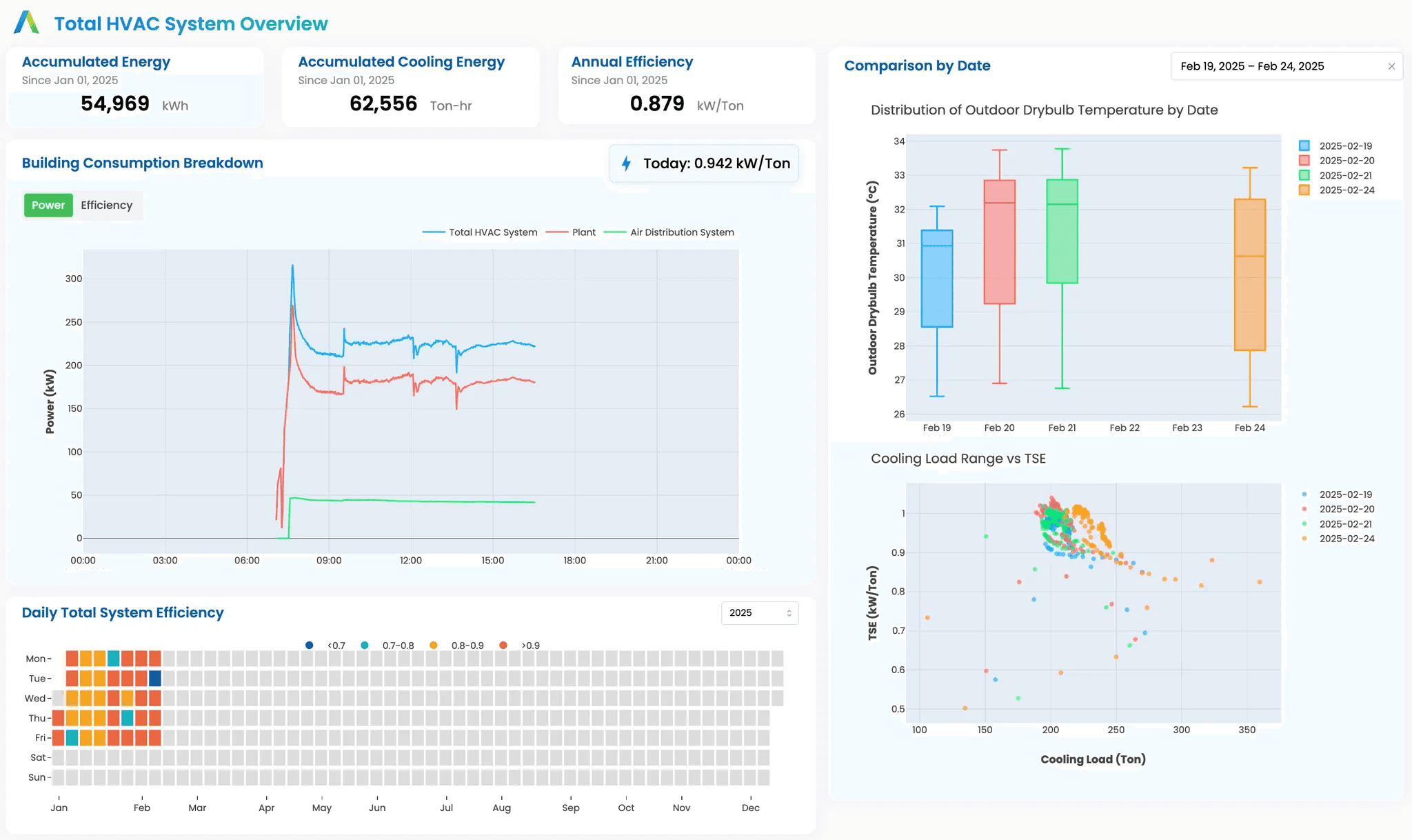 Provides a high-level summary of the entire HVAC system, including key performance metrics and energy usage.