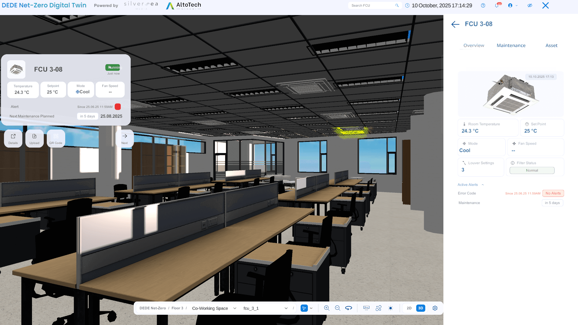 3D digital twin platform that integrates real-time equipment data with spatial visualization for smarter facility management